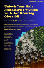 Apply and Massage oil into follicles. This oil is for all hair types and can also be added to conditioners, shampoos while used alone daily or 2-3x's weekly. It doesn't require much to see results. This oil is used for a variety of things such as beards, damaged hair, hair loss, breakage, shedding & growth. Please know that Growing Glory will Thicken, Strengthen, Heal while leaving your hair Healthy.